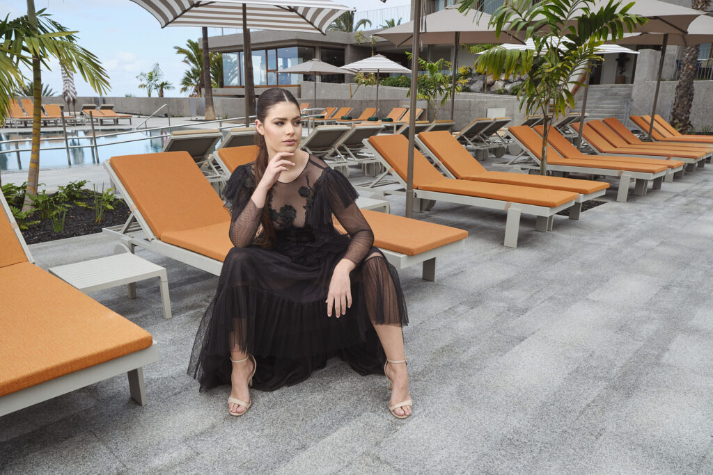 En esta ocasión, Gabriela Gil, miss Internacional Canarias, espectacular con los diseños de fiesta de la firma tinerfeña Amarca, viste con glamour y estilo las primeras Navidades de este querido y emblemático establecimiento tras su reciente reapertura.