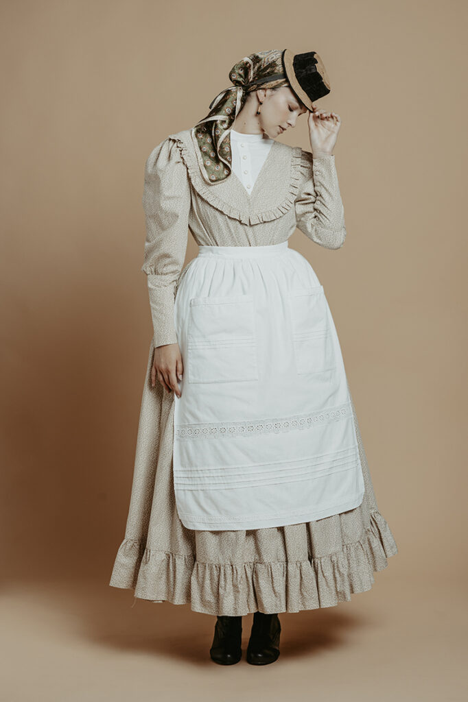 Delantal. Pieza de uso práctico para proteger la falda, pero también decorativa en contextos festivos.